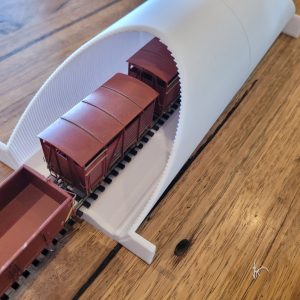The trackbed sections interlock for easy installation and aligment. The pipe sections slide into the trackbed sections to create a bridge suitable for a road overpass.